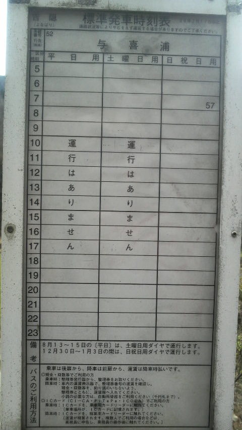 出発前に大阪上本町駅で偶然見つけたハイキングコースマップをみて決めました。 近鉄と並行する国道165号線をひたすら歩いて。 上り坂と平坦な道の繰り返し、コンビニも自動販売機もない。 近鉄の時刻表では両駅間は4.5キロあり、この間を一時間以上かけて歩ききった。 バス停がいくつかあったが、写真のように日曜・祝日の早朝に一本しか運転していない変わった路線である。 一体どういう人が利用してるのだろう? 榛原駅から急行列車に乗って大阪上本町駅に向かっていますが、パンタグラフに鳥が引っ掛かっていたらしく、河内国分駅で暫く停車したので遅れて運転しています。 16時13分に到着予定です。 |