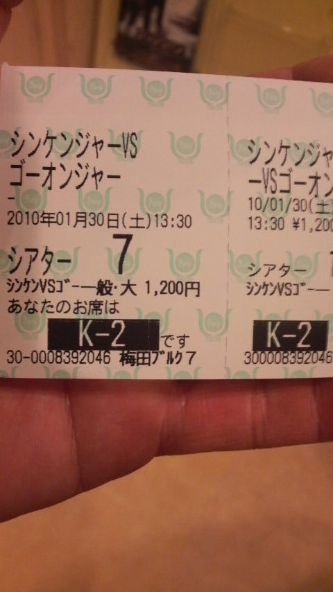 今日は梅田ブルク7という映画館で「侍戦隊シンケンジャーvsゴーオンジャー銀幕BANG」を見てきました。